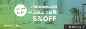 ただ今、当社を初めてご利用で10%割引、2回目のご利用でも5%割引のキャンペーンを実施中です。