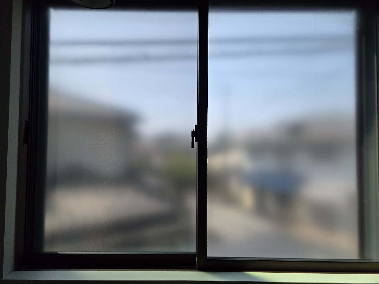 今回のフィルムは、目隠し効果は薄めですが、カーテンを開けて生活をしても外を歩く歩行者や、お隣と目が合うことはなくなります。