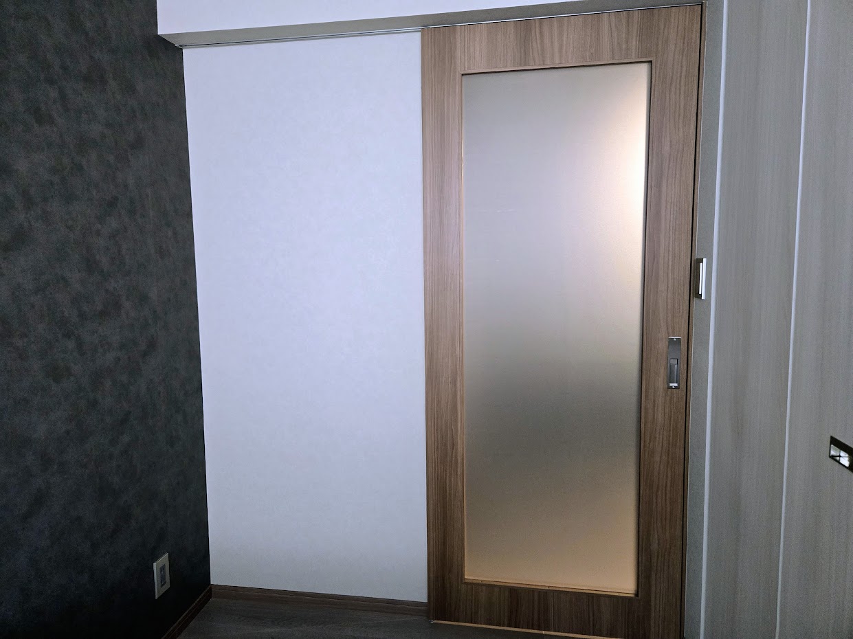 すりガラス調の目隠しフィルムで、日中、夜間の目隠し効果がついています。