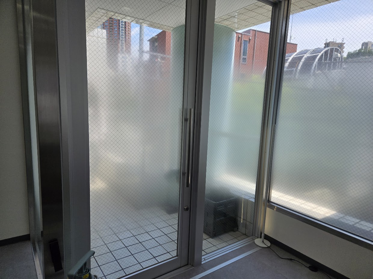 今回は、センターグラデーションフィルムというタイプで上下が透明になっていて、ドアガラスの前に人がいても足元が見えるので開閉時もドアをぶつけてしまう心配もなく、目線の部分の目隠しはしっかりとしていて評判の良いグラデーションフィルムです。