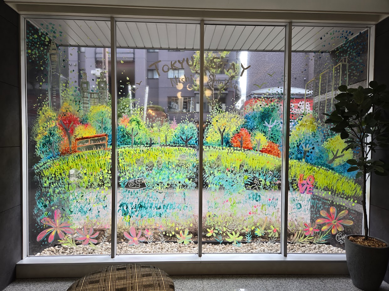 東京都新宿区のホテルのエントランスで既存のガラスフィルム施工後の手直し作業を行いました。