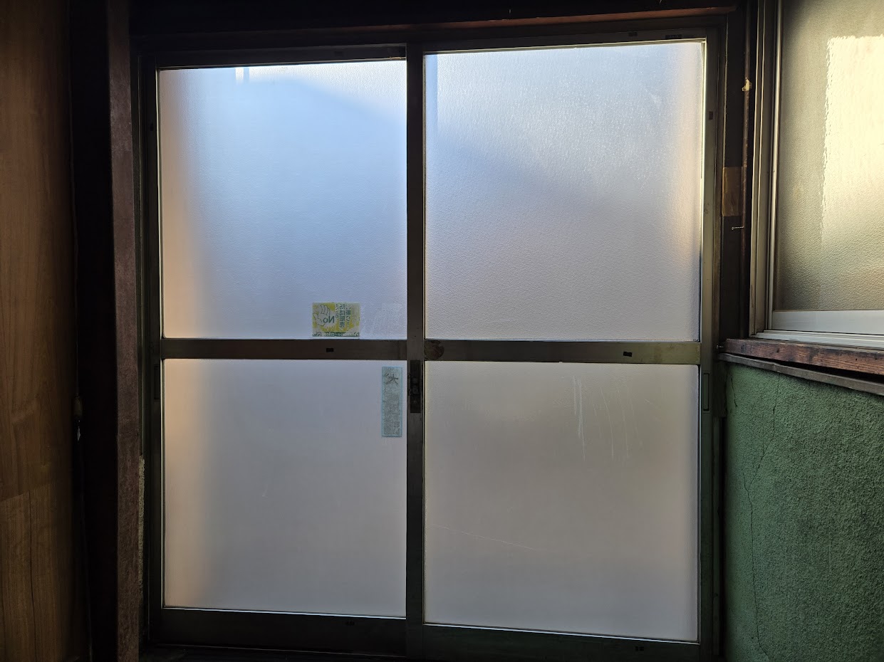 東京都墨田区の戸建ての凹凸ガラスに貫通防止フィルムを貼りました。