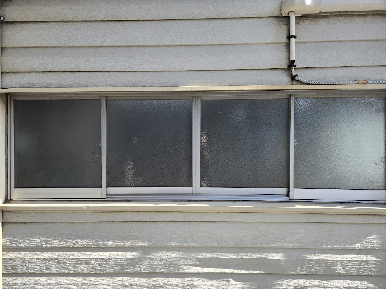 使用フィルムはグラフィルのSN-200Uという品番で、窓ガラスの表面がざらざらの型板ガラスに貼れるフィルムの中では一番強力なタイプになります。